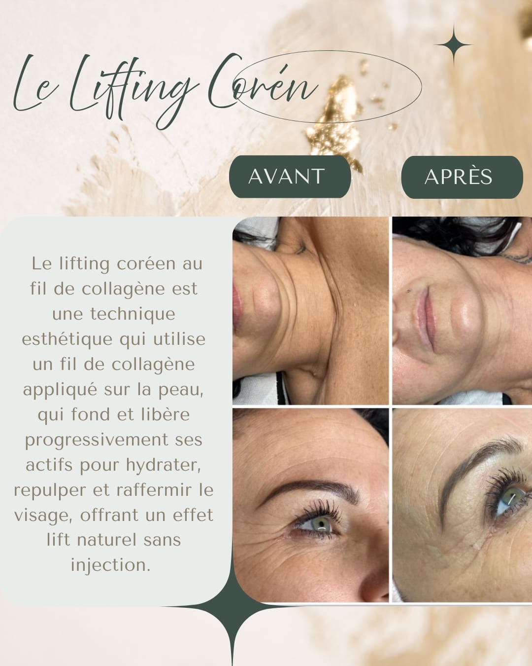 Le temps laisse des empreintes que je vous aide à sublimer. Mon expertise en soin anti-âge s'appuie sur des méthodes exclusives qui allient tradition et innovation pour un rajeunissement visible. Au cœur de mon offre se trouve le lifting coréen, un soin liftant naturel révolutionnaire qui redessine les contours sans aucune intervention invasive. Cette technique avancée offre un visage repulpé et visiblement plus jeune. Pour un raffermissement de la peau en profondeur, je maîtrise le traitement radiofréquence, une technologie de pointe qui relance la production de collagène et d'élastine, essentiels à la fermeté de la peau. Ce soin visage avancé permet une véritable régénération cellulaire, agissant sur le traitement des rides et le traitement anti-relâchement du visage et du cou. Chaque séance de soin rajeunissement est une promesse de retrouver une peau plus dense et tonique. Le drainage du visage, que j'intègre à mes protocoles, vient parfaire ce travail en décongestionnant les tissus et en affinant l'ovale, pour un lifting holistique complet.